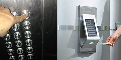 Cách bấm thang máy thông thường trong trường hợp này đã hết tác dụng bởi vì thang máy không sử dụng bảng điều khiển có nút bấm mà dùng thẻ từ (Chỉ những người thuộc tòa nhà, cư dân, bảo vệ, người có trách nhiệm mới có thẻ và được quyền sử dụng thang máy ...)